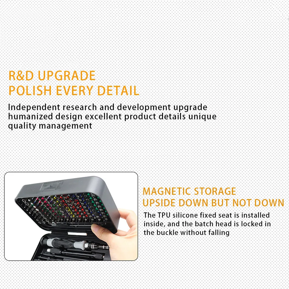 The 132 in 1 multi-function precision screwdriver tool set is designed to cater to a vast array of electronic devices. Whether you're disassembling a laptop, repairing a computer, or fixing a mobile phone, this set has the right tool for the job. The special storage box ensures that each screwdriver is neatly organized and easily accessible, reducing the time and effort needed to find the right tool for the task at hand.
